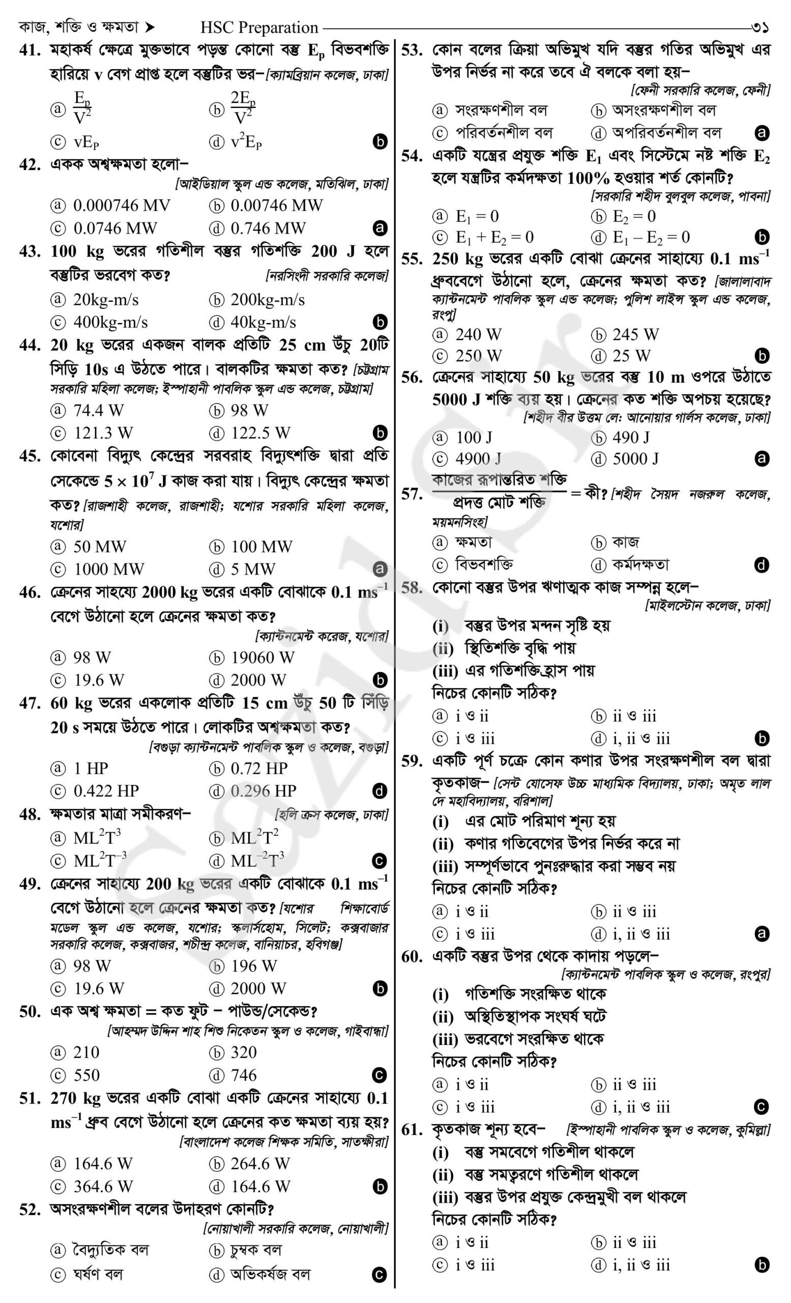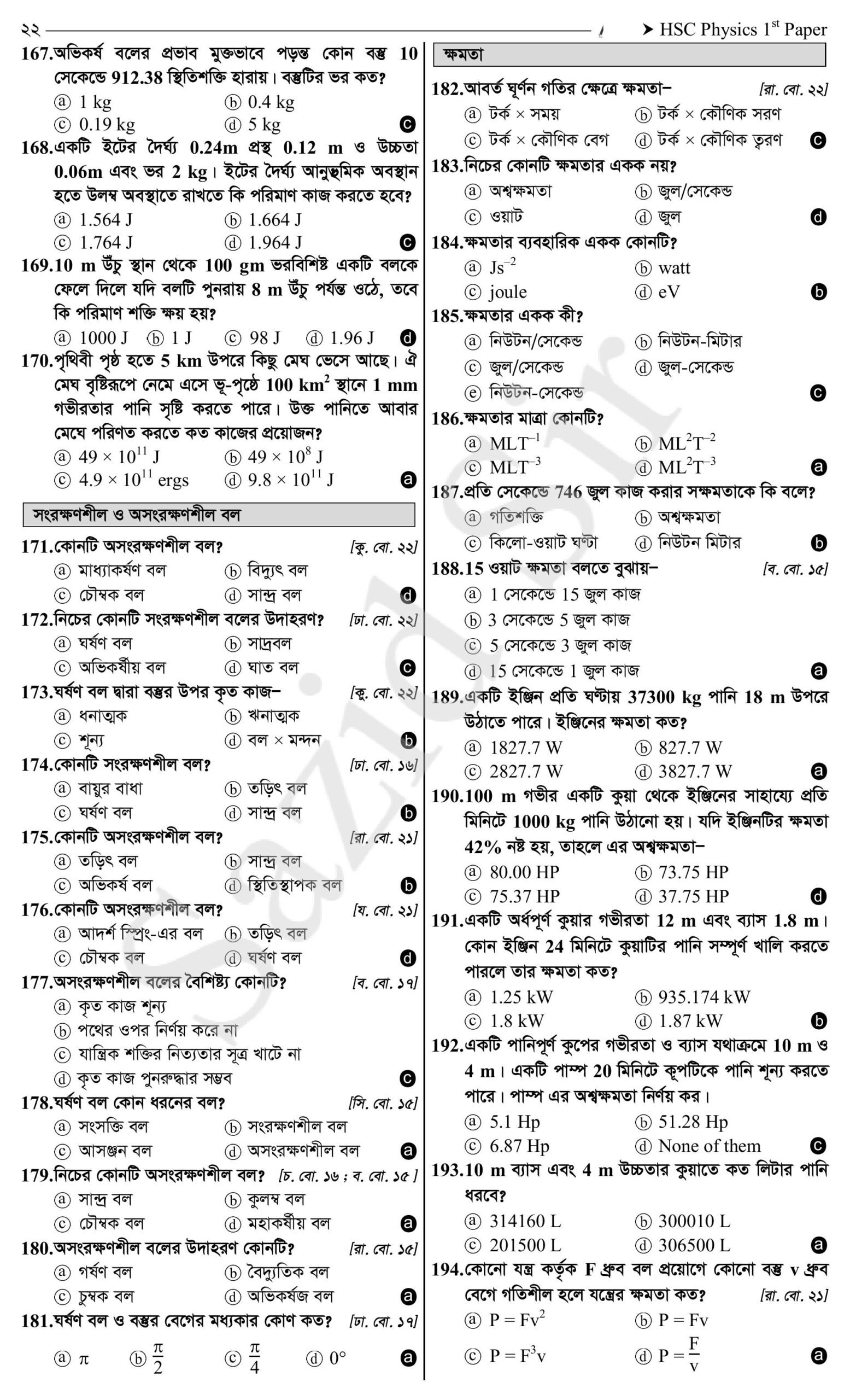 - কাজ শক্তি ক্ষমতা চট্টগ্রাম বোর্ড ২০২২। HSC Physics 1 Chittagong Board 2022